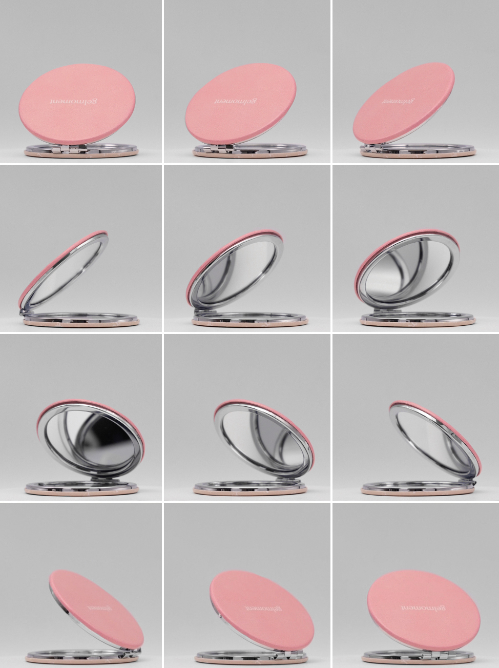 Our compact mirror is beautifully constructed with a faux-leather encasement, pink on one side and rich cream on the other. With a sleek design, it features an invisible magnetic clasp that keeps it shut securely in your bag.
